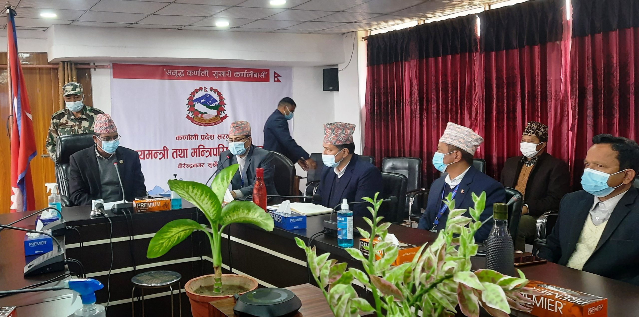 ‘नेपालमा ओमिक्रोन भाईरसको संक्रमण बढ्न थालेको छ, कर्णाली प्रदेश पनि त्यसबाट अछुतो रहन सक्दैन,’ मुख्यमन्त्री शाहीले भने, ‘सरकारका कामलाई अगाडि बढाउँदै गर्दा अब कोभिड–१९ को तेस्रोत लहरसँग जुध्नुपर्ने परिस्थिति आएको छ, प्रदेश सरकार नागरिकको घरआँगनको सरकार हो। त्यसैले जनताको सुरक्षा सरकारको परिहलो प्राथमिकता हो।’