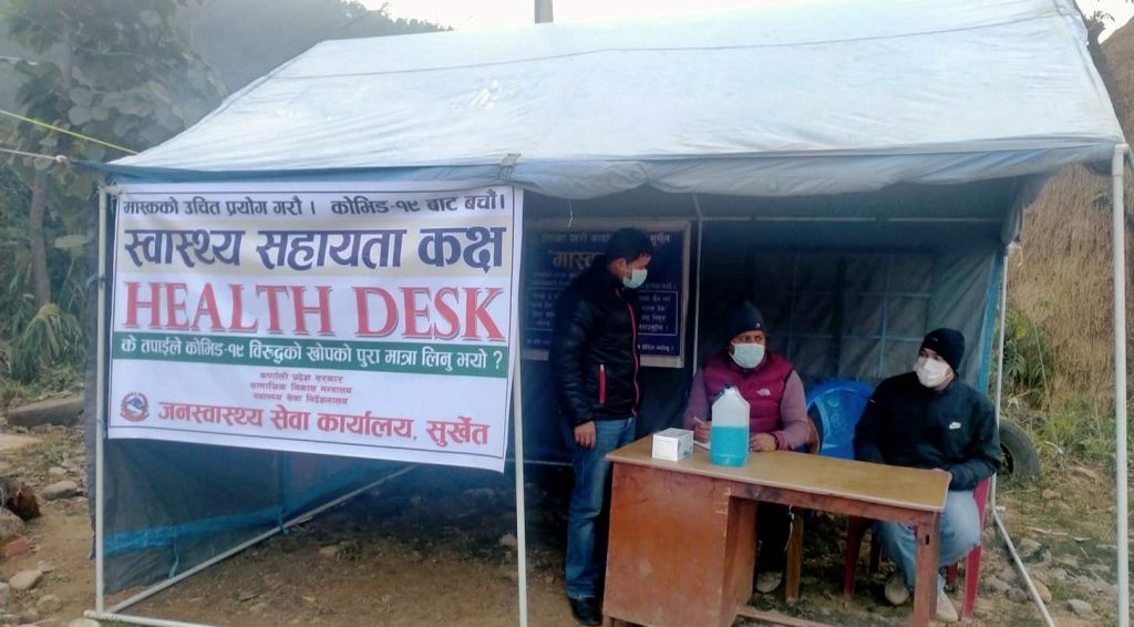 कोभिड–१९ महामारी सुरू भएदेखि नै हेल्थ डेस्क बबईमा राखिएको थियो। सुर्खेततर्फको भागमा राखिएको डेस्कमा सुर्खेततर्फबाटै प्रहरी तथा स्वास्थ्यकर्मी खटाईएको थियो। कर्णाली प्रदेश सरकारले होल्डिङ सेन्टर पनि छिन्चुमा नै बनाउने लागेकाले हेल्थ डेस्क सारिएको प्रजिअ अधिकारीले बताए।
