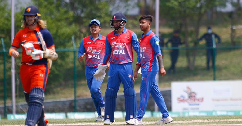 नेपालका ओपनरद्वय कुशल भुर्तेल २५ रन र आसिफ शेख २९ रनमा आउट भएका थिए। रोहित पौडेलले २ रन भन्दा बढी जोड्न सकेनन्।