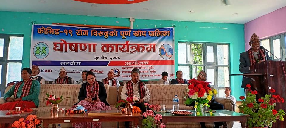 वीरेन्द्रनगर नगरपालिका कोभिडविरुद्धको पूर्ण खोपयुक्त पहिलो स्थानीय तह हो ।