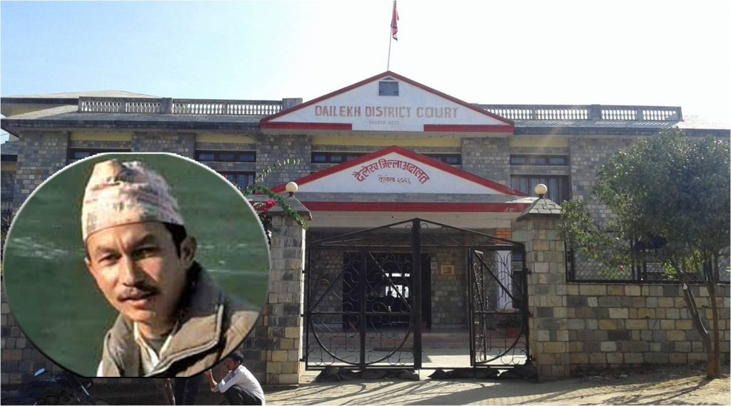 सुर्खेत। दैलेखका पत्रकार डेकेन्द्रराज थापाको हत्यामा संलग्न तीन जनालाई जन्मकैद तोकिएको छ। दैलेख जिल्ला अदालतका न्यायाधिश दण्डपाणि लामिछानेको आइतबार बसेको ईजलासले तीनजनालाई जन्मकैद सुनाएको हो।